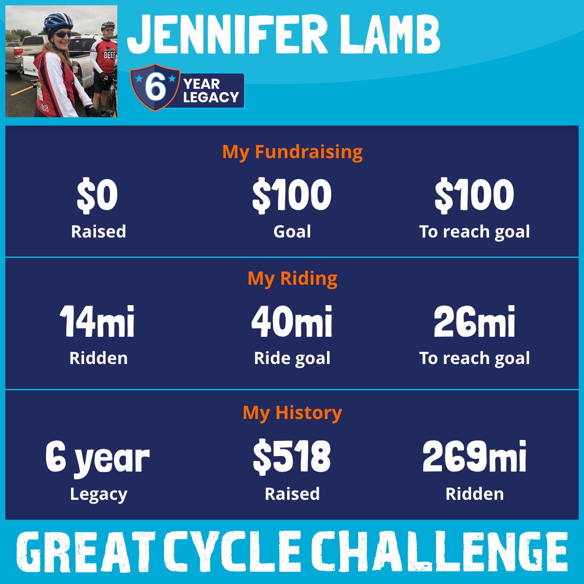 I am riding 40 mi in memory of my friend, Jeremy Gilbert and Jose Romero and Anice Shelton. Please sponsor me and support my challenge to fight kids' cancer and save little lives.