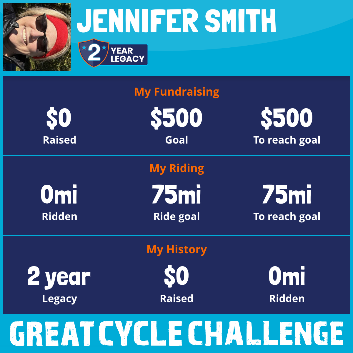 I've raised $0 My goal is $500 Donate Now