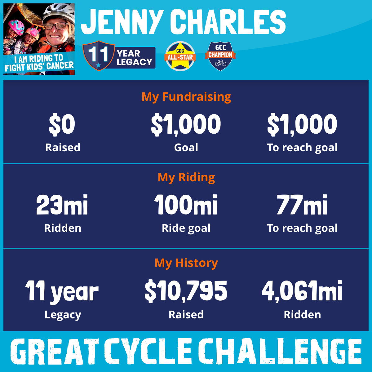 Like the past 9 years, this September, I am taking part in the Great Cycle Challenge to fight kids' cancer! My husband who passed this past May will be watching over while my littles and I do our best to bike as many miles for kids fighting each day!