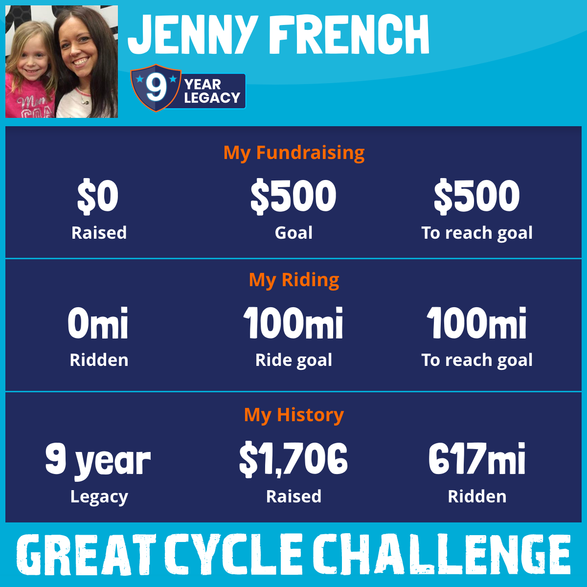 I am riding 100 mi for Peggy Sue. Please sponsor me and support my challenge to fight kids' cancer and save little lives.