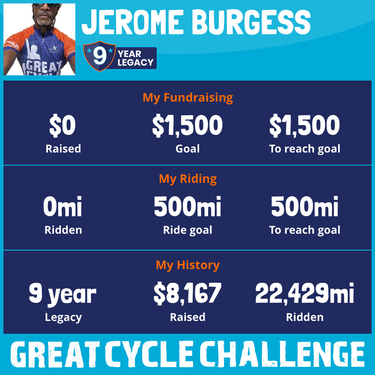 8 years and 17,000+ miles and my faith hasn't wavered. I've combined my love of cycling with a cause the exceeds simply raising money. I'm doing my part to save lives, and I love this. Too the many friends and family that have supported me, I humbly thank you!