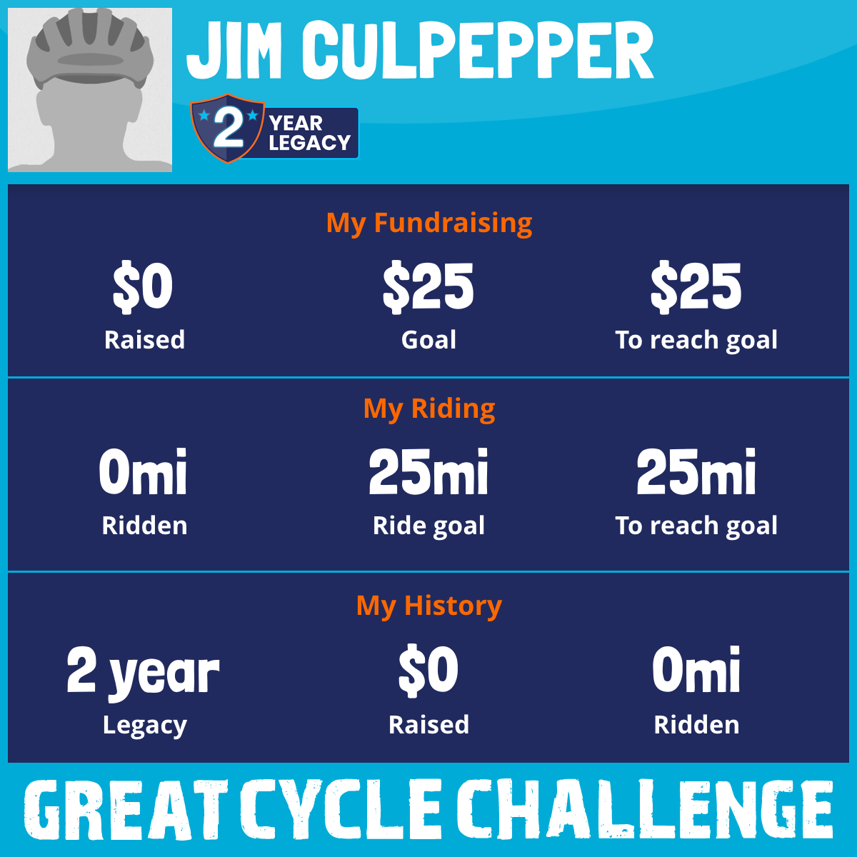 I am riding 25 mi for Roy Culpepper. Please sponsor me and support my challenge to fight kids' cancer and save little lives.