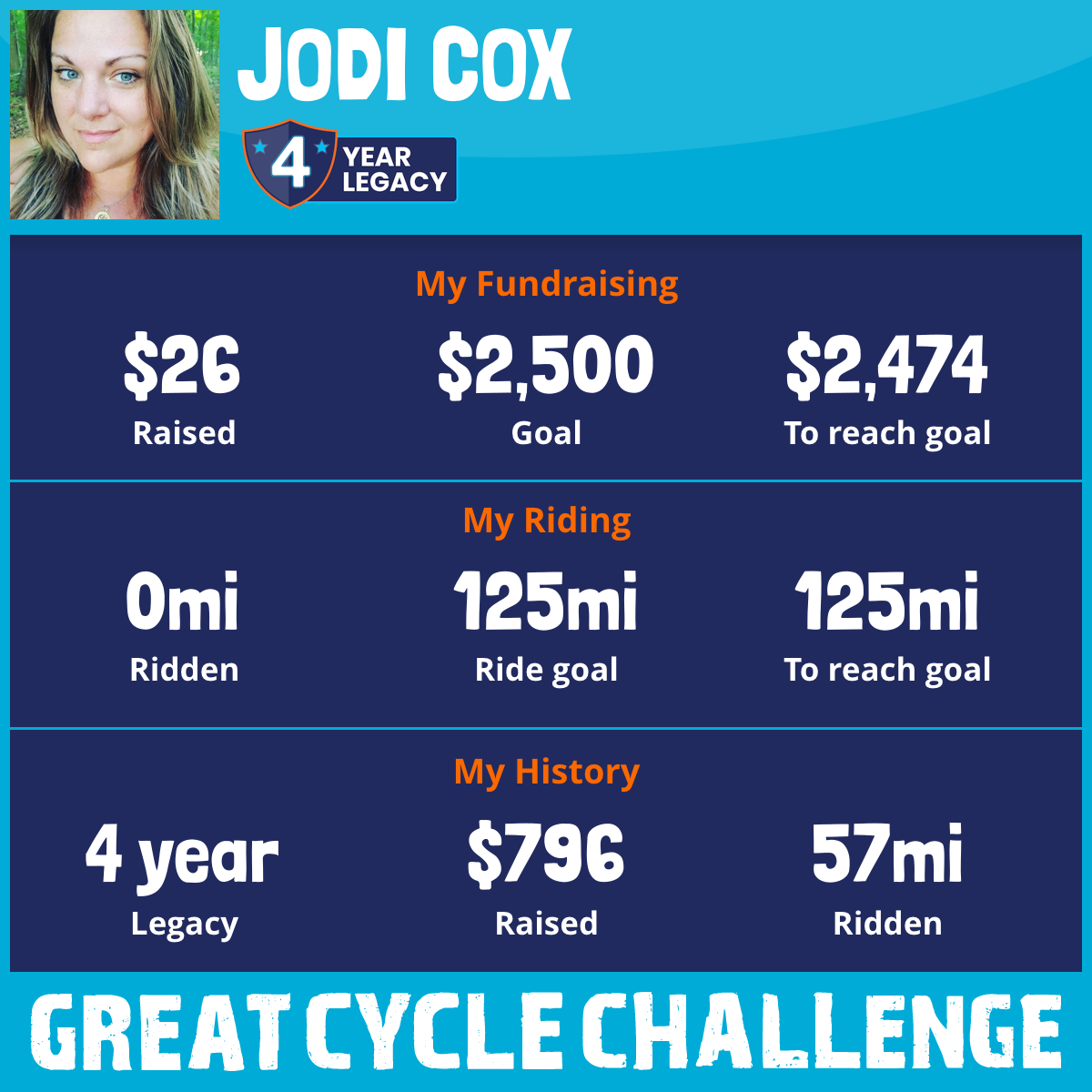 I am riding 125 mi in memory of Janis. Please sponsor me and support my challenge to fight kids' cancer and save little lives.