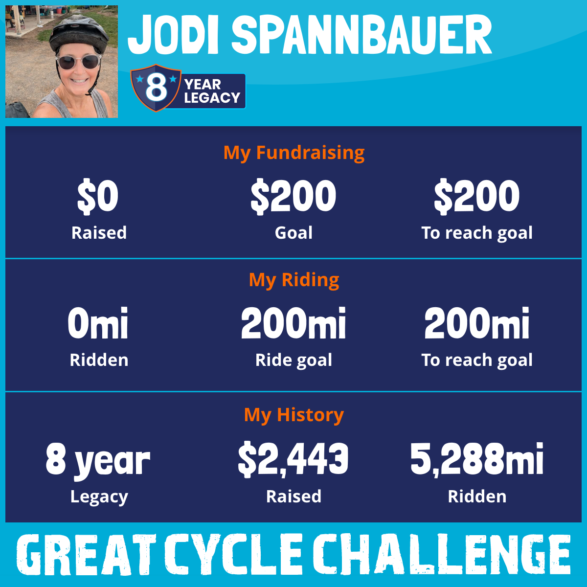 I am riding 200 mi in memory of My brother in law Dick. Please sponsor me and support my challenge to fight kids' cancer and save little lives.