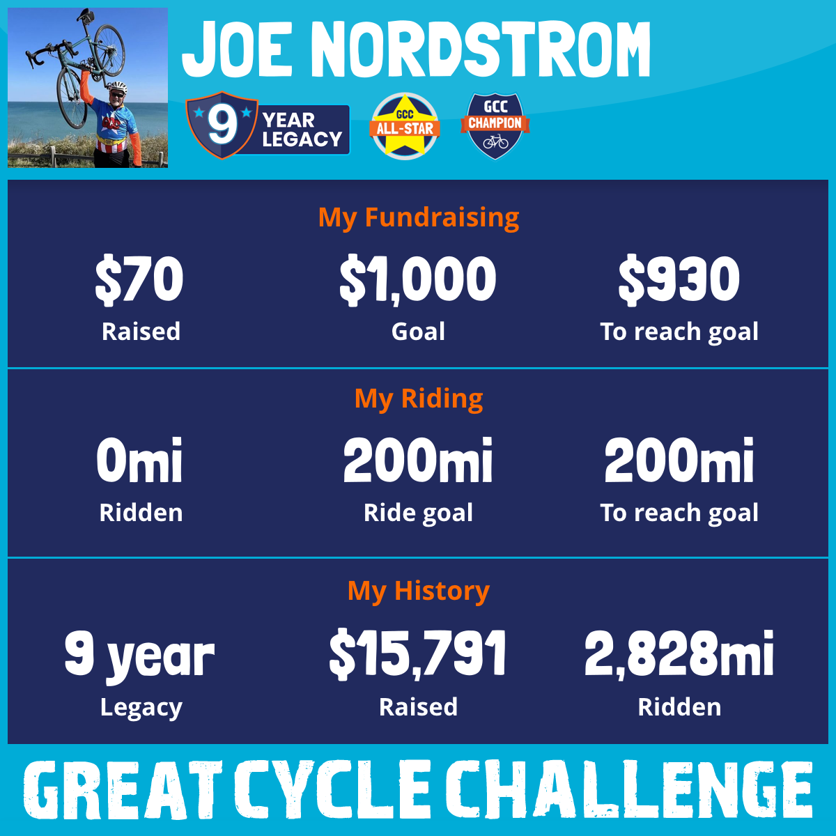 210 mi Ridden$928 Raised2017