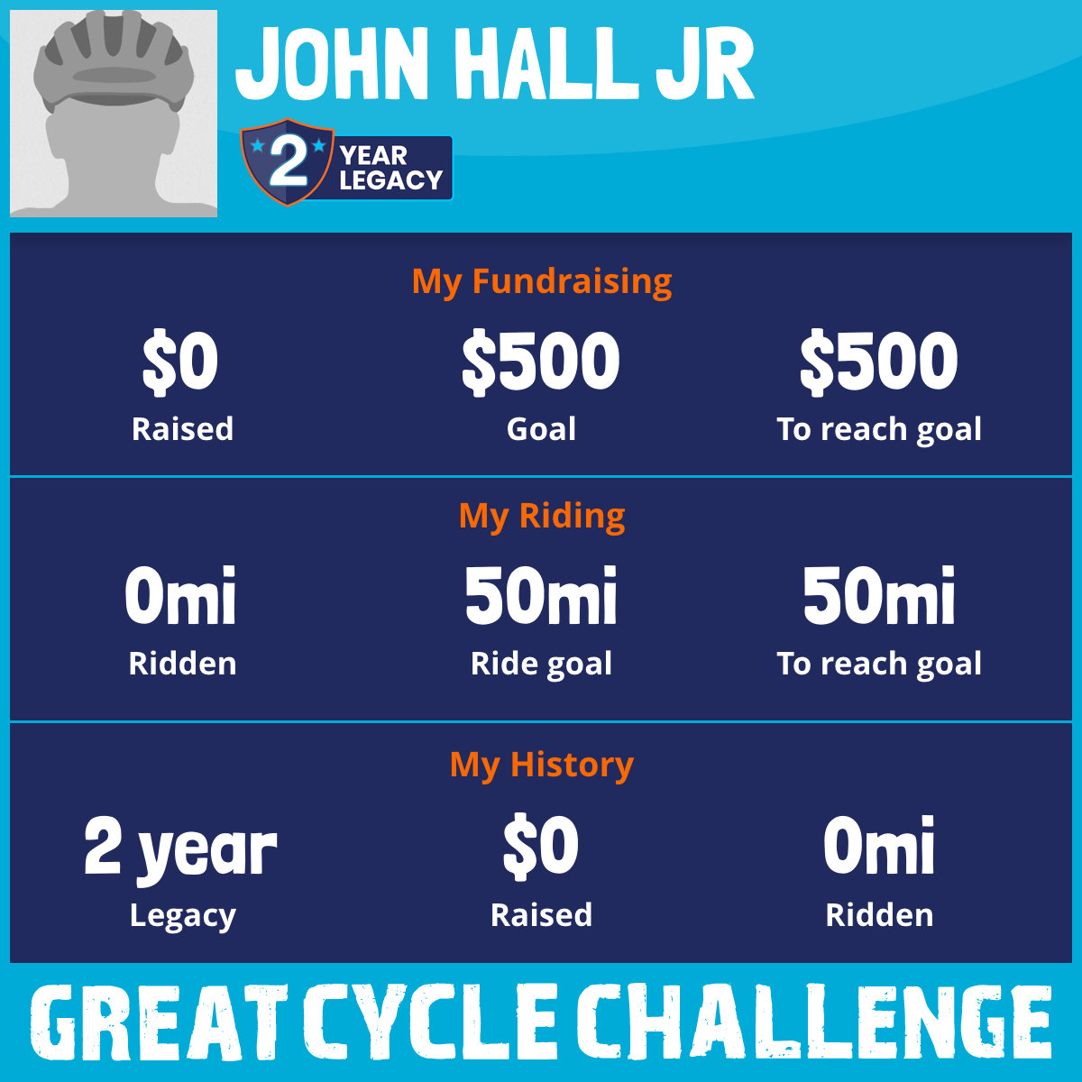 I am riding 50 mi in memory of my dad, John Hall sr. Please sponsor me and support my challenge to fight kids' cancer and save little lives.