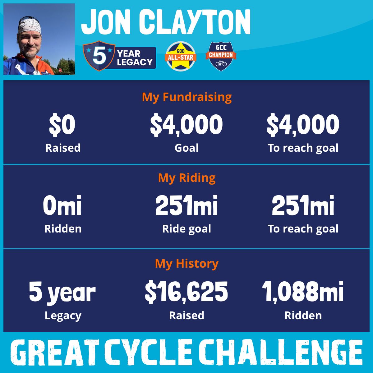 This September, for my fourth year, I will be riding with the Great Cycle Challenge to fight kids' cancer! This campaign has raised over $72 Million Dollars since its inception in 2017. Last year we raised over $9 Million! Each year thousands of riders sign up to pedal and petition their friends, family, and network to support this worthy cause. I am proud to be part of the GCC Champions.