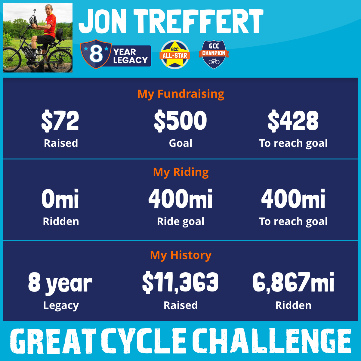 I have an even stronger motivation as I enter my 8th Great Cycle Challenge: Cancer research funding is at risk. Children's cancers are different than most cancers which affect adults and unfortunately do not receive the same level of funding for breakthroughs such as that I am benefiting from. This is the need the Children's Cancer Research Fund serves and is more important than ever.