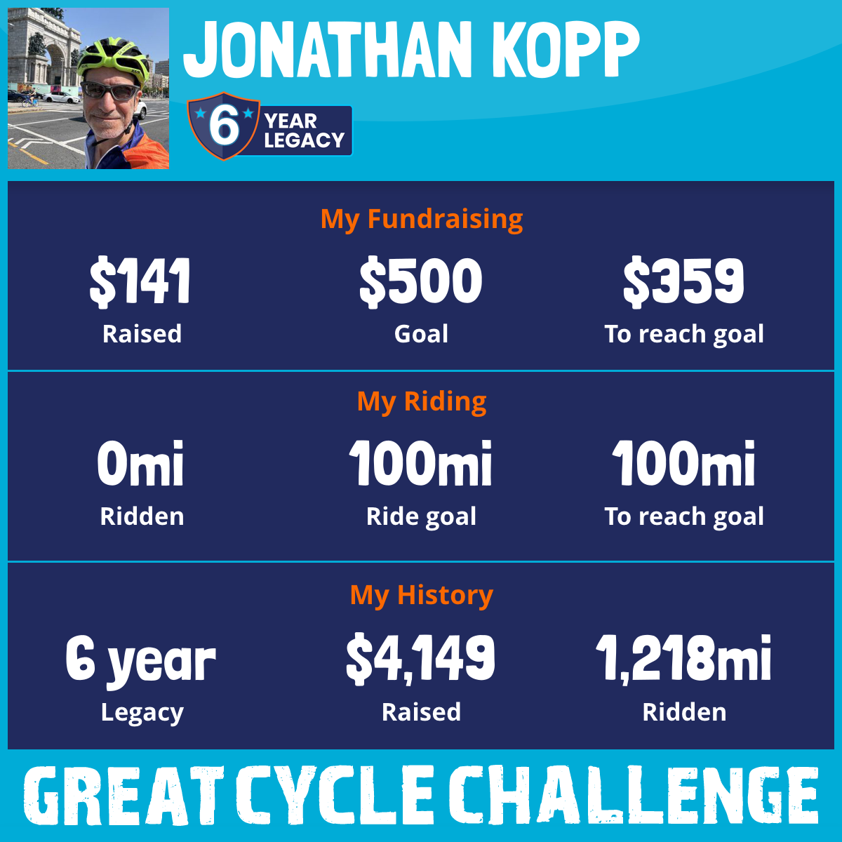 This September, for my 6th time, I am once again joining the annual Great Cycle Challenge to fight kids' cancer.