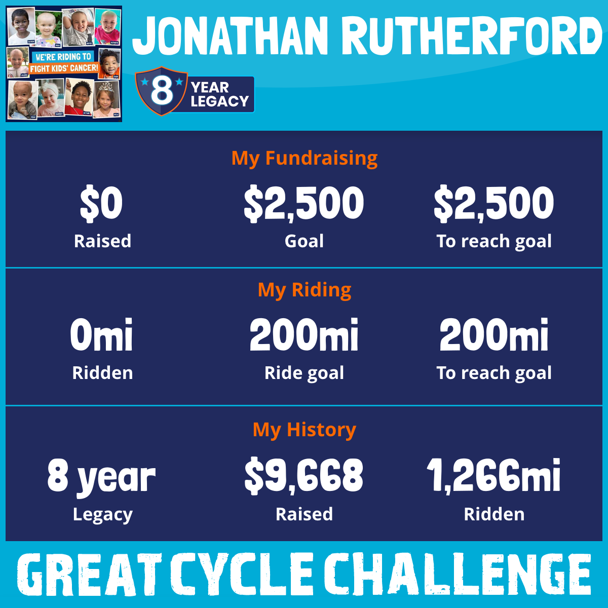 So I am raising funds through my challenge to help these kids and support Children's Cancer Research Fund to allow them to continue their work to develop lifesaving treatments and find a cure for childhood cancer.