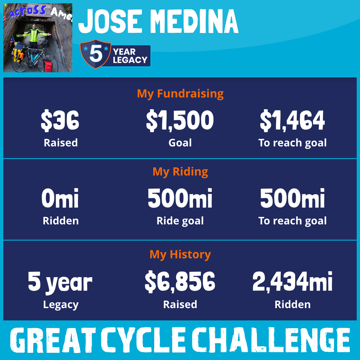 I am riding 4000 mi for Eddie, Aide, Alex, Luis, and 3 year old Rupi.. Please sponsor me and support my challenge to fight kids' cancer and save little lives.