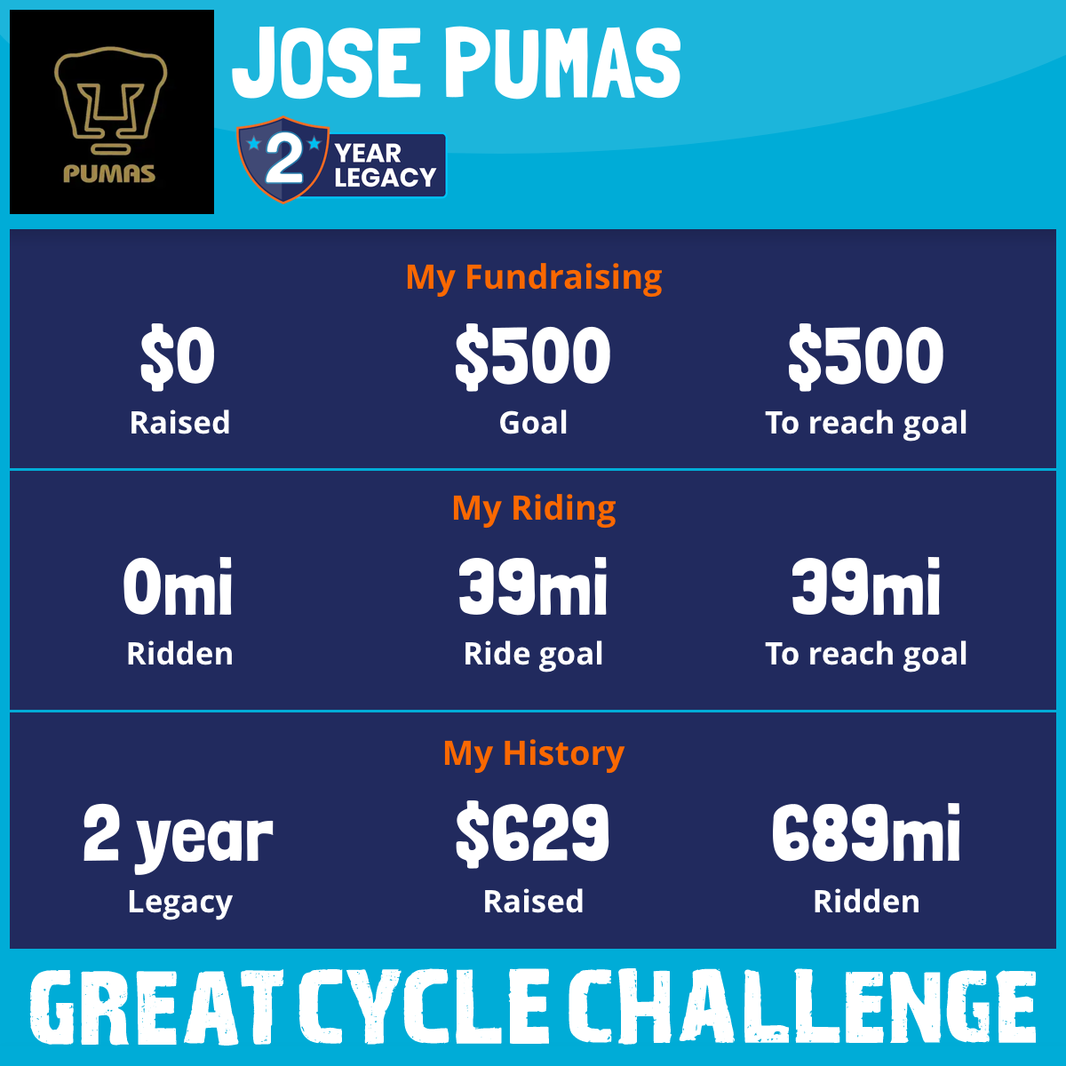 I am riding 39 mi in memory of Miguelito. Please sponsor me and support my challenge to fight kids' cancer and save little lives.