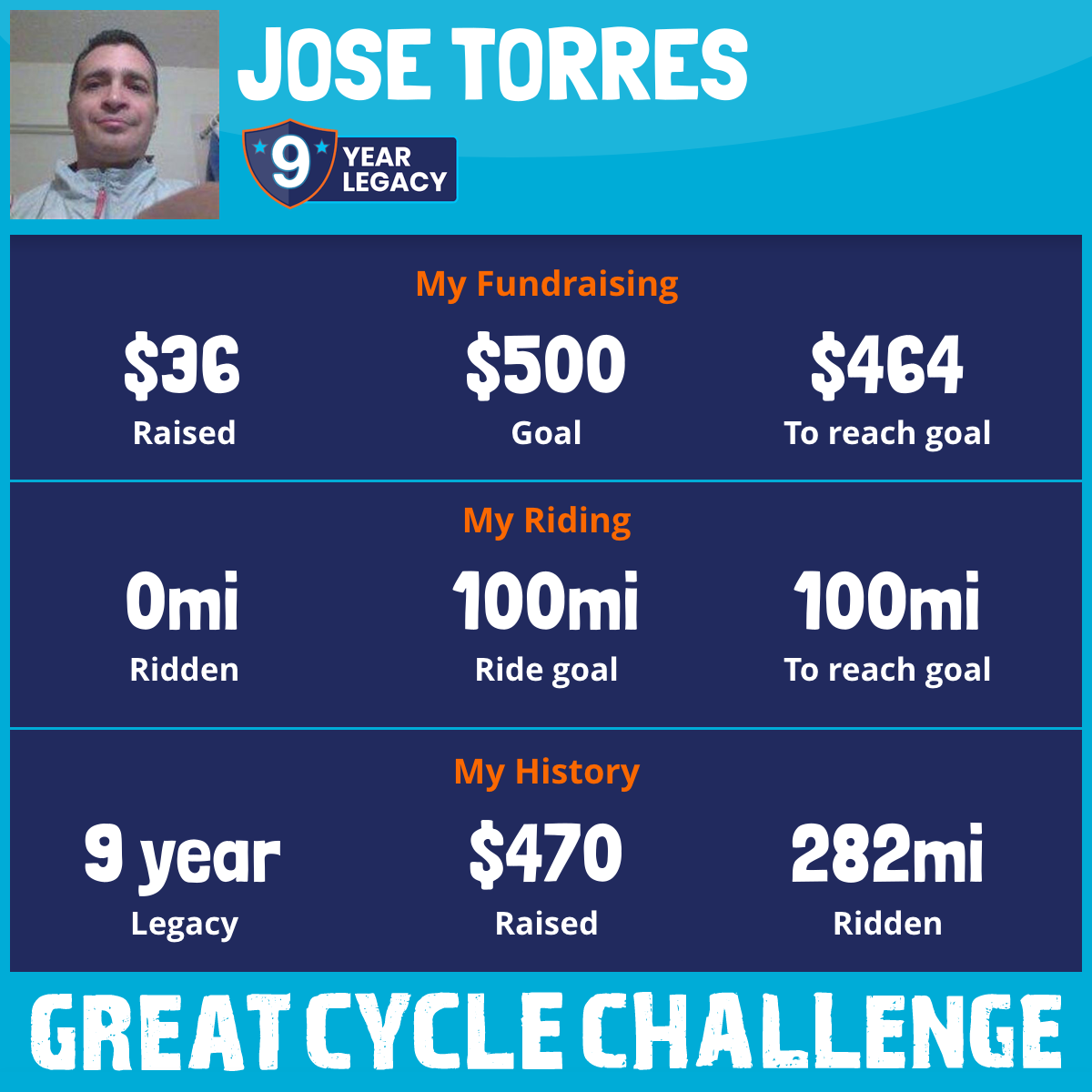 I am riding 100 mi in memory of Julio Torres. Please sponsor me and support my challenge to fight kids' cancer and save little lives.