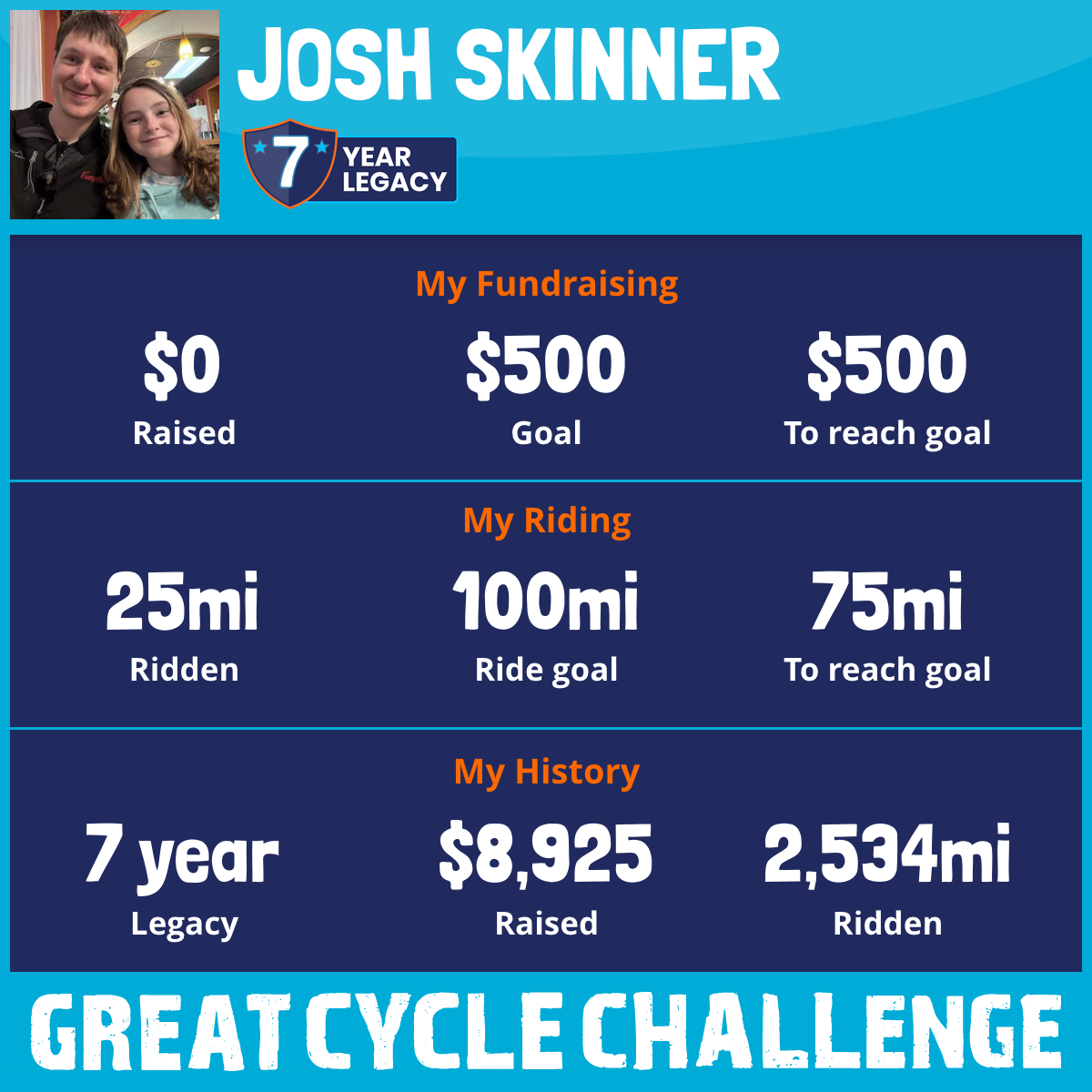 “Josh, So incredibly proud of you for riding for Anna & helping so many other children. Missed you so much a few weeks ago but LOVED spending time with your darling wife and kids. Love, Aunt Bev & Uncle Mike ❌⭕️❌”