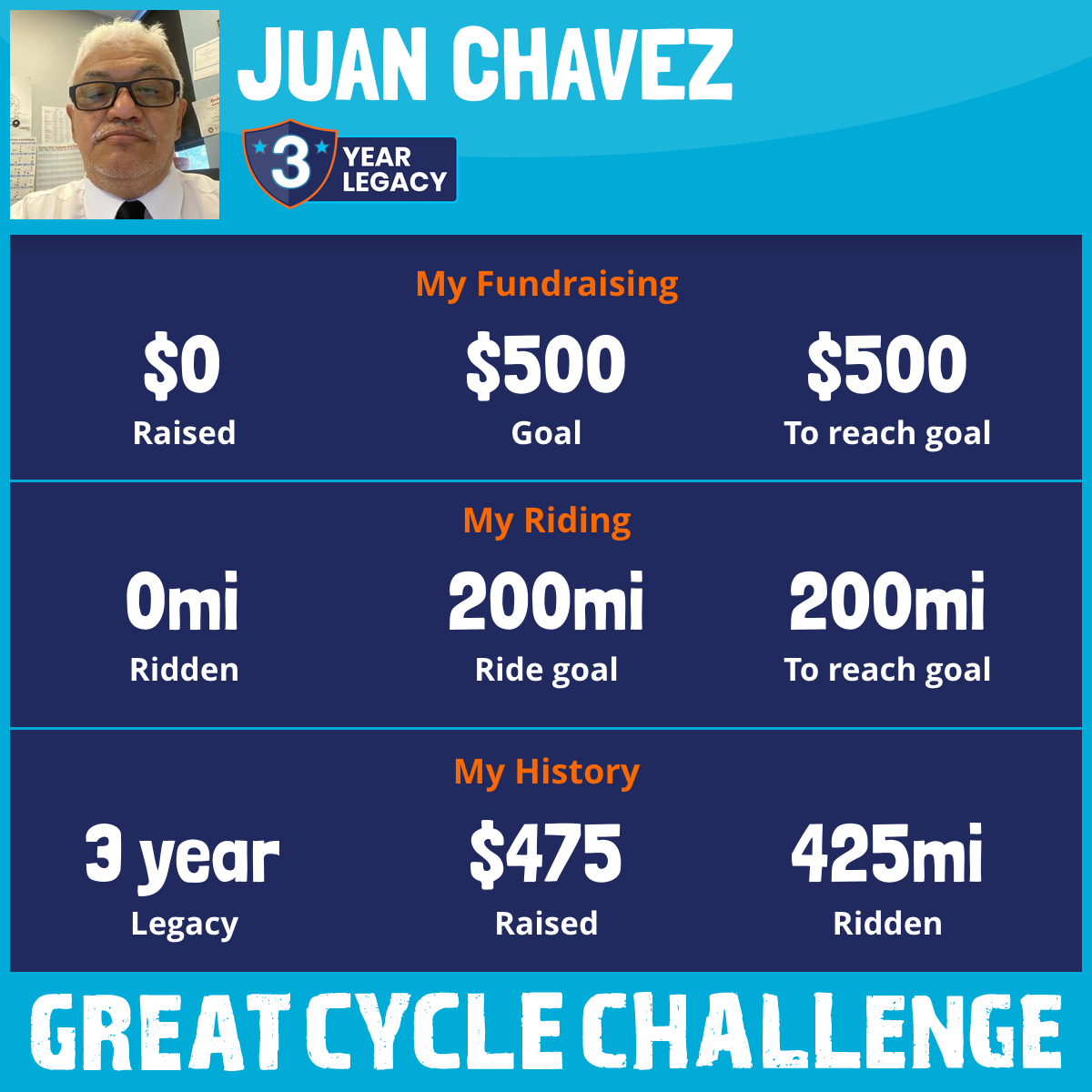 I am riding 39 mi for my friend, Armando Barbosa. Please sponsor me and support my challenge to fight kids' cancer and save little lives.