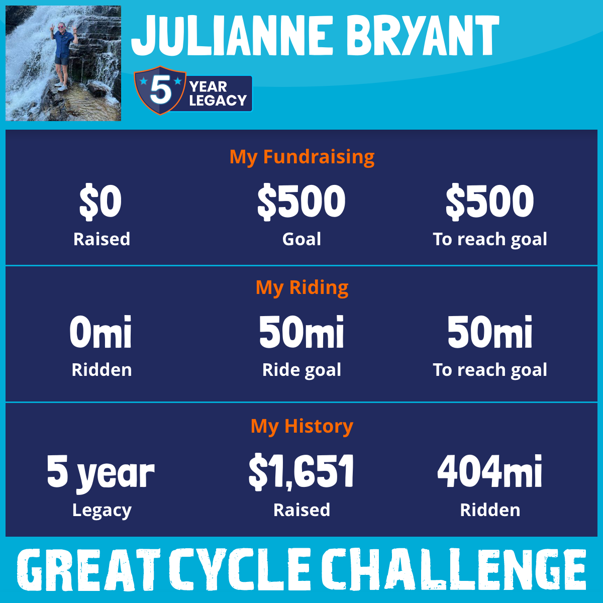 I am riding 50 mi to fight kids' cancer and save little lives. Please sponsor me to support my challenge!