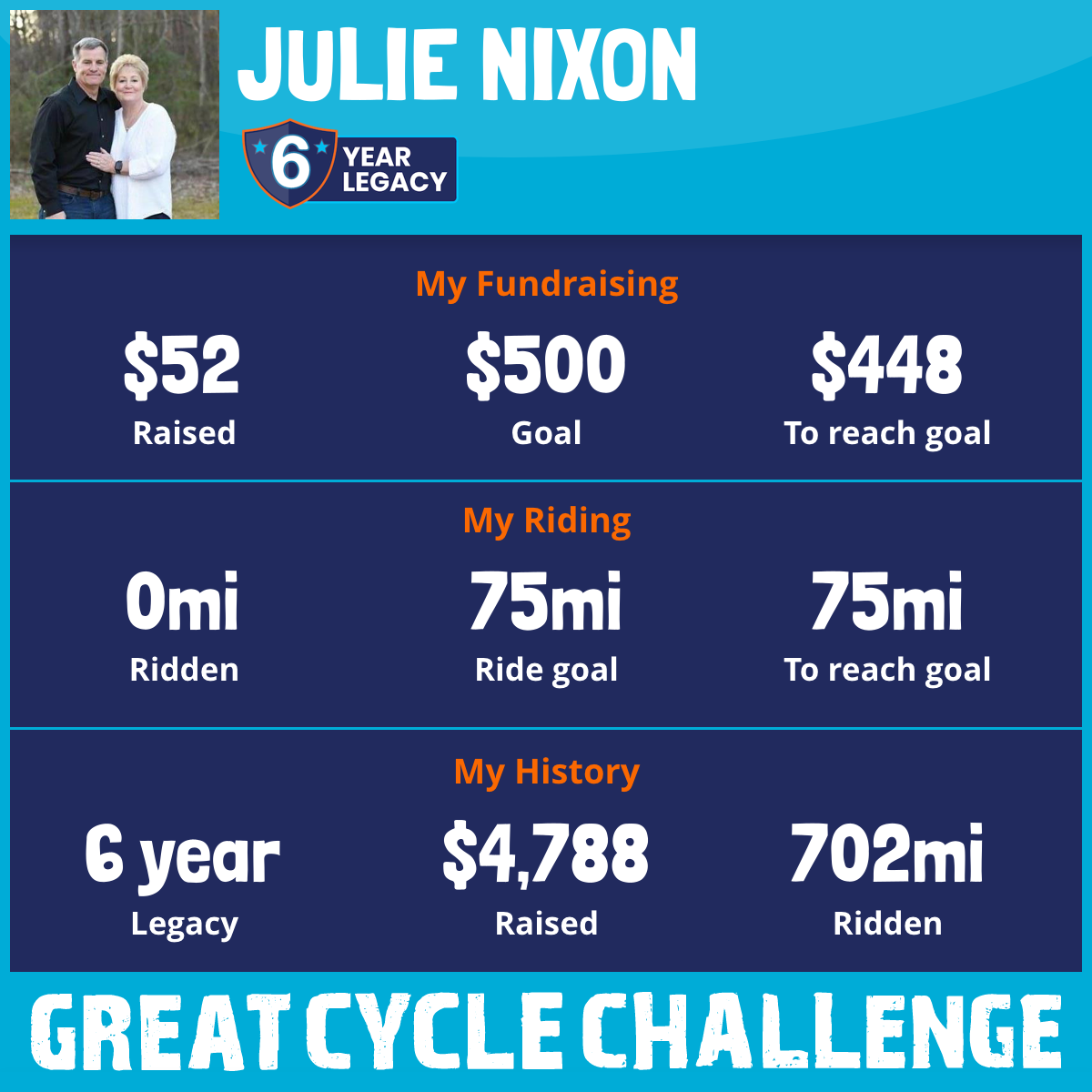 I will be riding in Honor of Charlotte Jones. My dear friend, neighbor & other mother is currently fighting and I’m SO proud of her. She had her 93rd birthday on August 31st. I know this is a pediatric ride so Sara Beth Bagley…this one’s for you too. I will be riding 75 miles, so please send prayers & your support for this incredible cause.