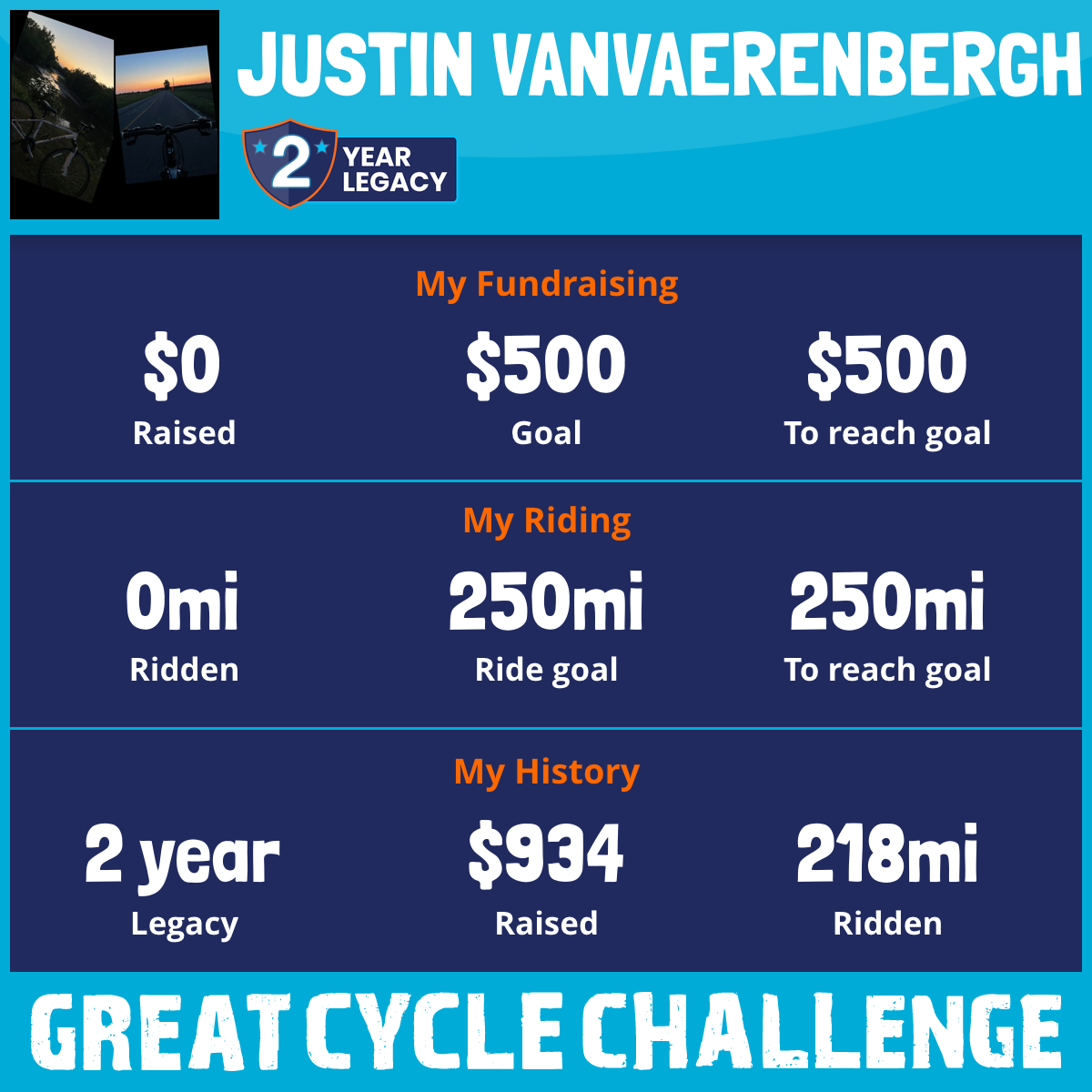 I am riding 250 mi in memory of my brother, Evan. Please sponsor me and support my challenge to fight kids' cancer and save little lives.