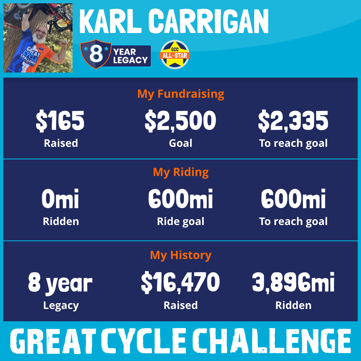 608 mi Ridden$3,996 Raised2025