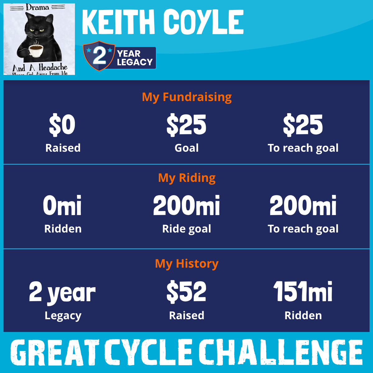 I am riding 200mi in memory of bryan coyle. Please sponsor me and support my challenge to fight kids' cancer and save little lives.