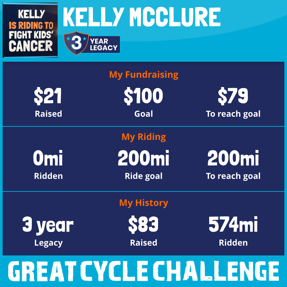 I am riding 39 mi to fight kids' cancer and save little lives. Please sponsor me to support my challenge!
