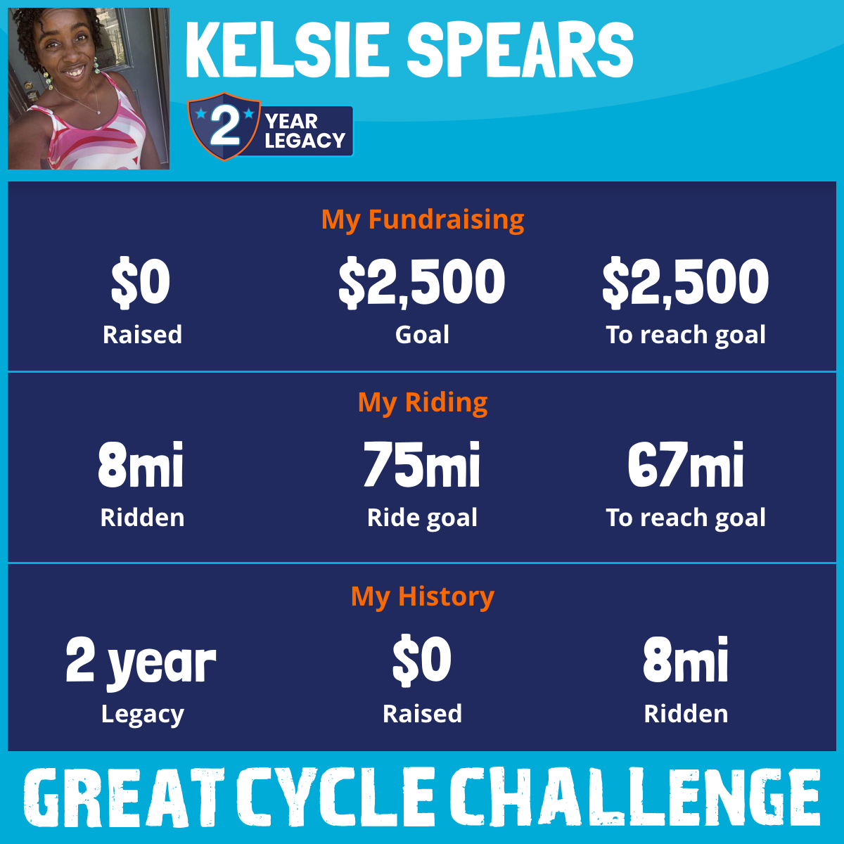 I am riding 75 mi for my loved one, My son’s Godmother. Please sponsor me and support my challenge to fight kids' cancer and save little lives.