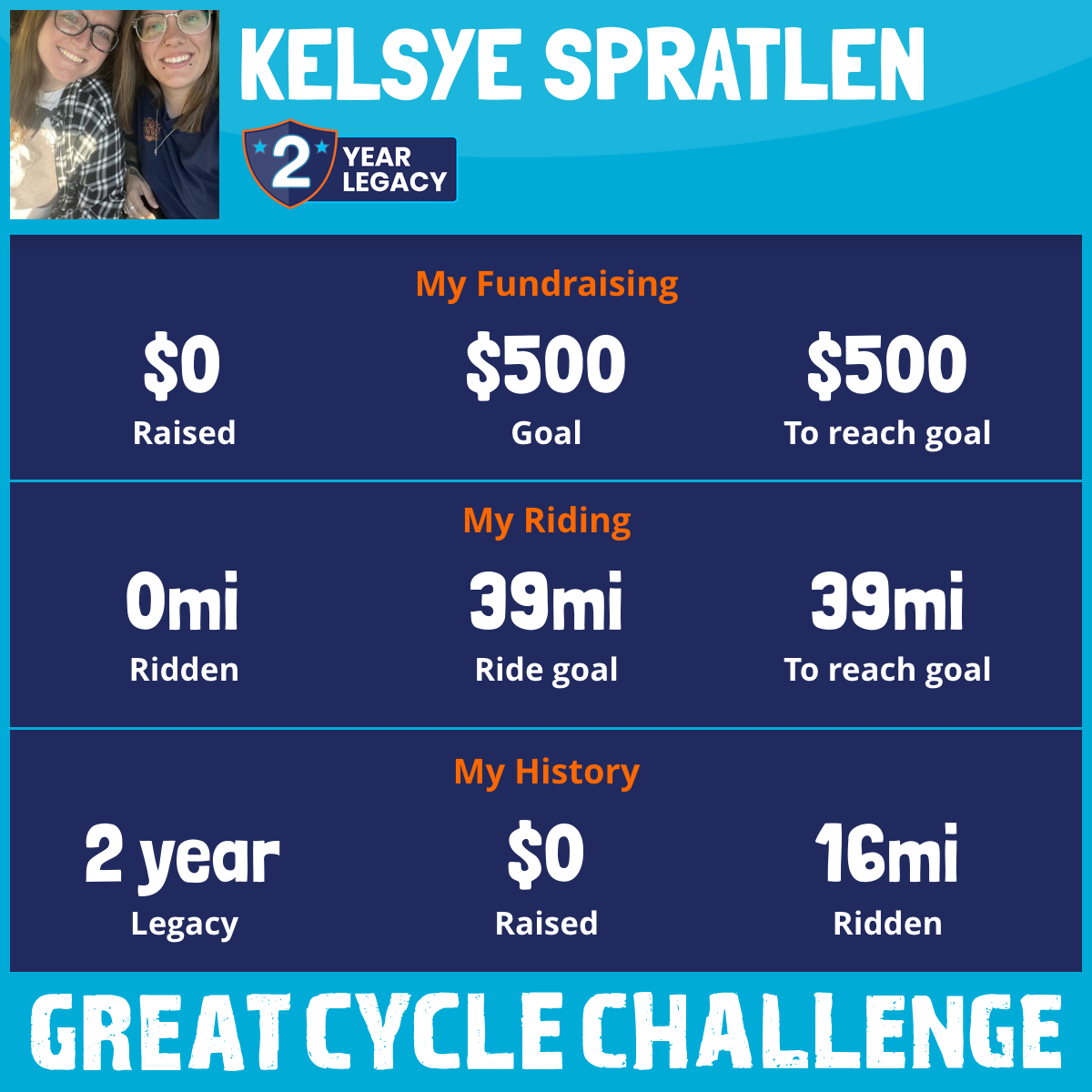 I am riding 39 mi for Cam. Please sponsor me and support my challenge to fight kids' cancer and save little lives.