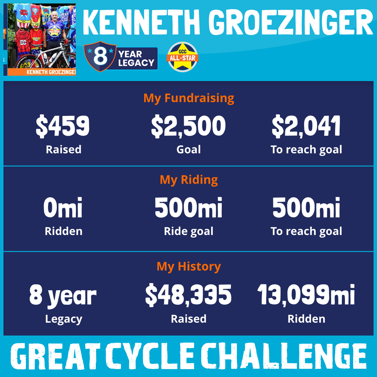 I am participating in my 8th Great Cycle Challenge USA to fight kids' cancer this September. I ride all year for the cause.
