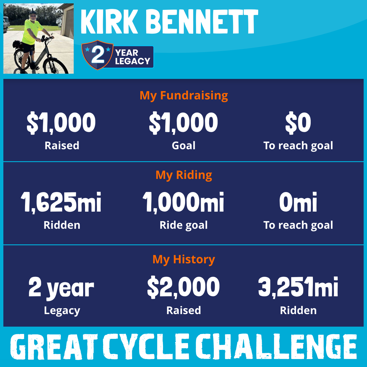 1,625 mi Ridden$1,000 Raised2026