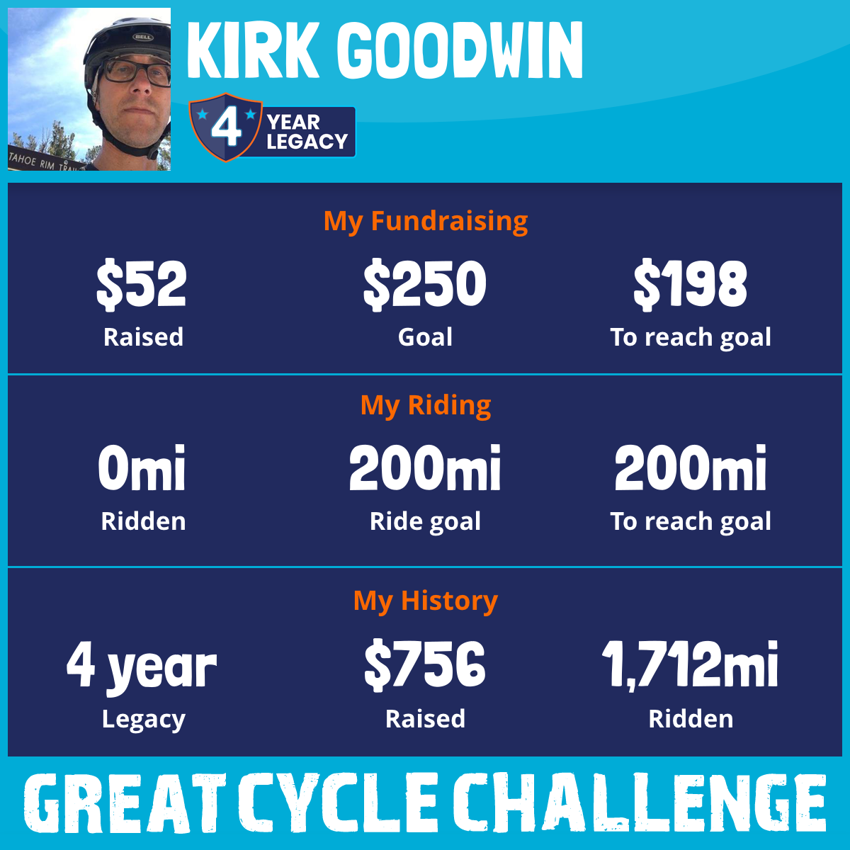 I am riding 200 mi for my friend, Jared. Please sponsor me and support my challenge to fight kids' cancer and save little lives.