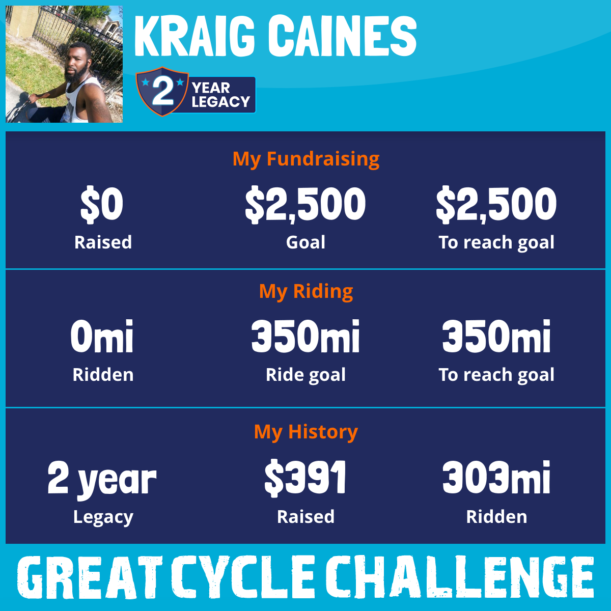 303 mi Ridden$391 Raised2020