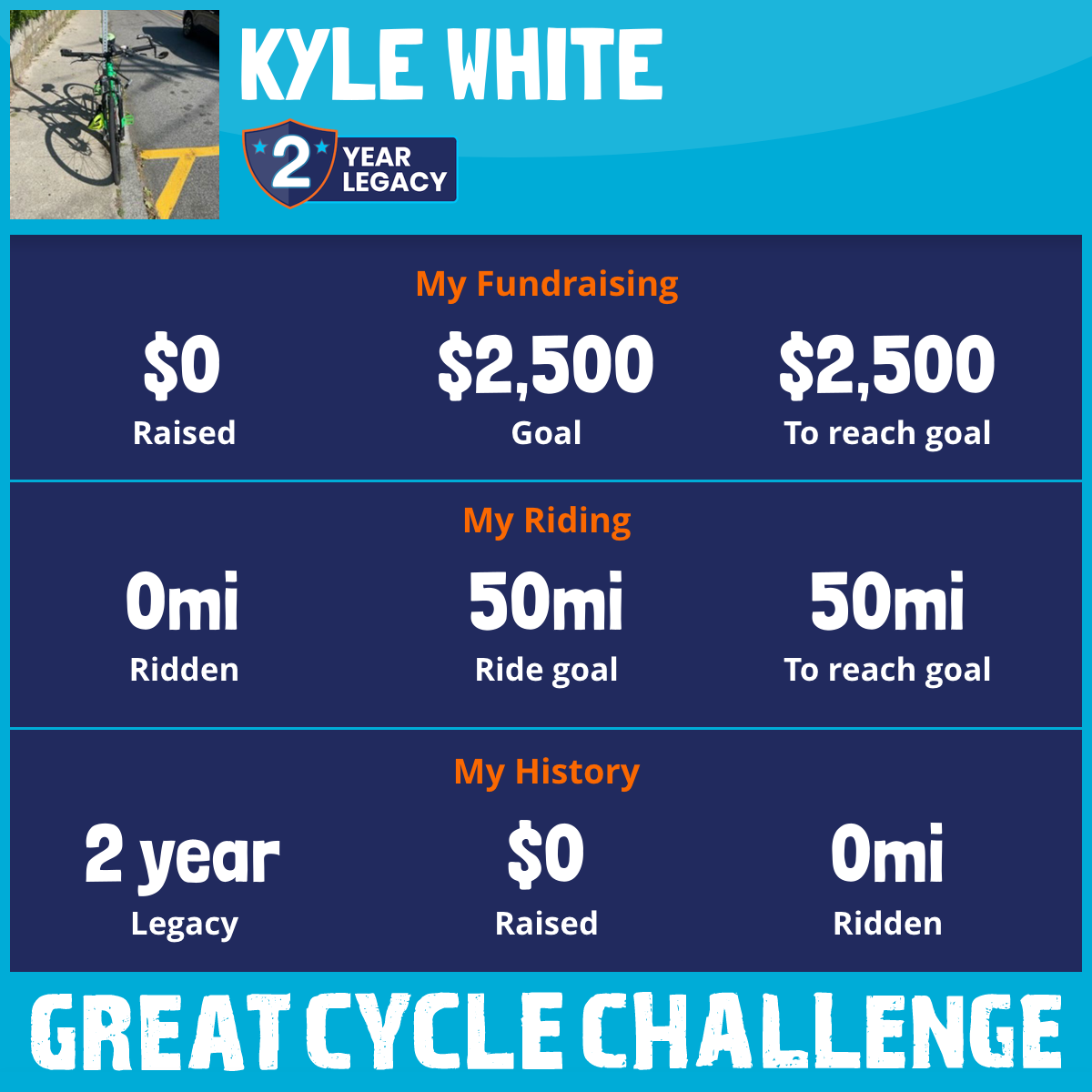 I am riding 50 mi for my myself, Kyle. Please sponsor me and support my challenge to fight kids' cancer and save little lives.