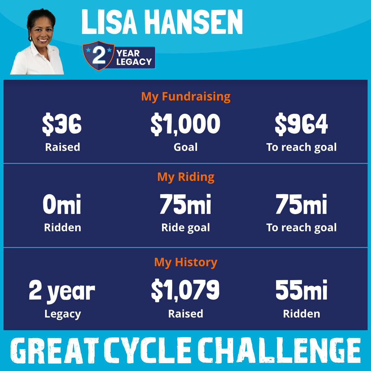 55 mi Ridden$1,043 Raised2024