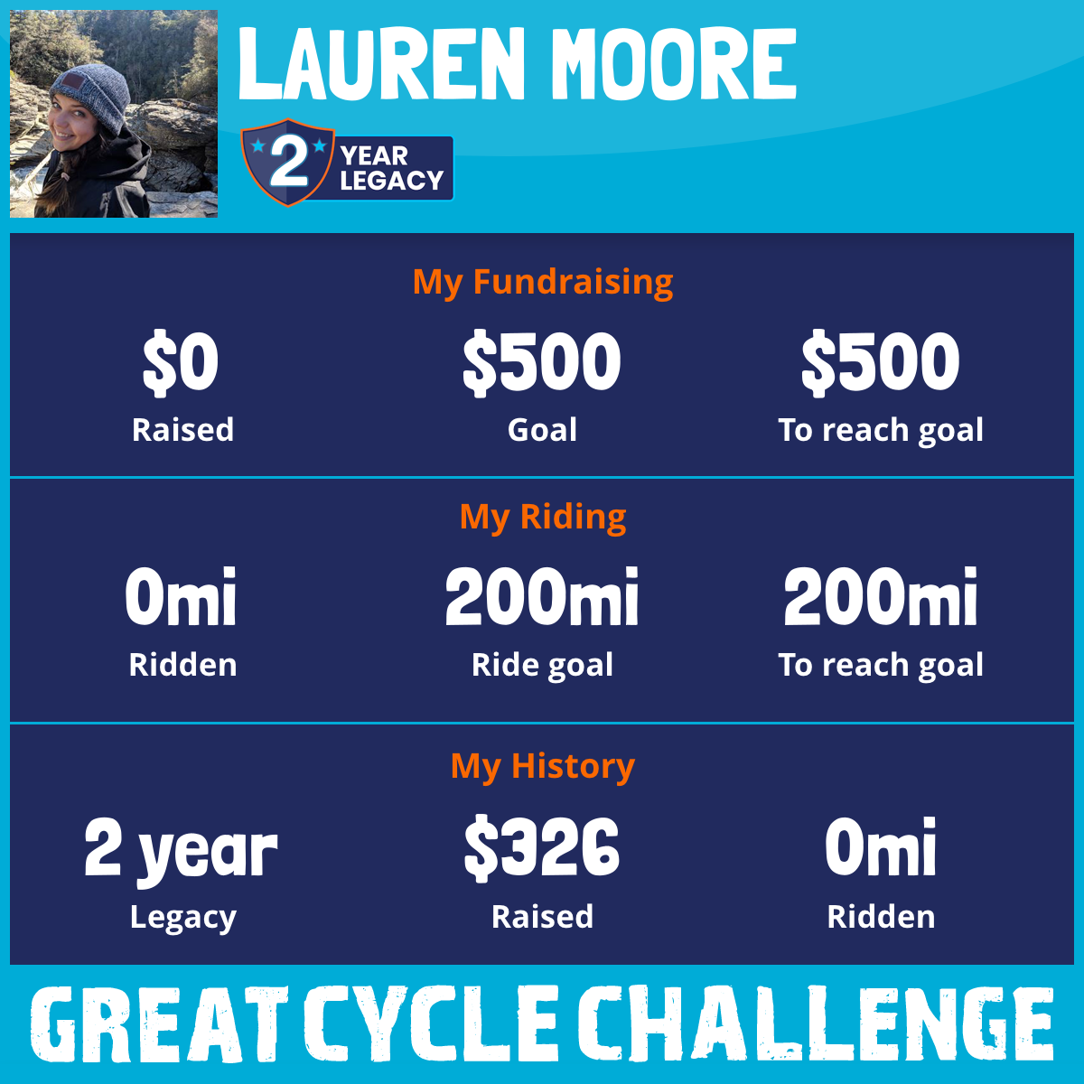 I am riding 200 mi for Lisa. Please sponsor me and support my challenge to fight kids' cancer and save little lives.