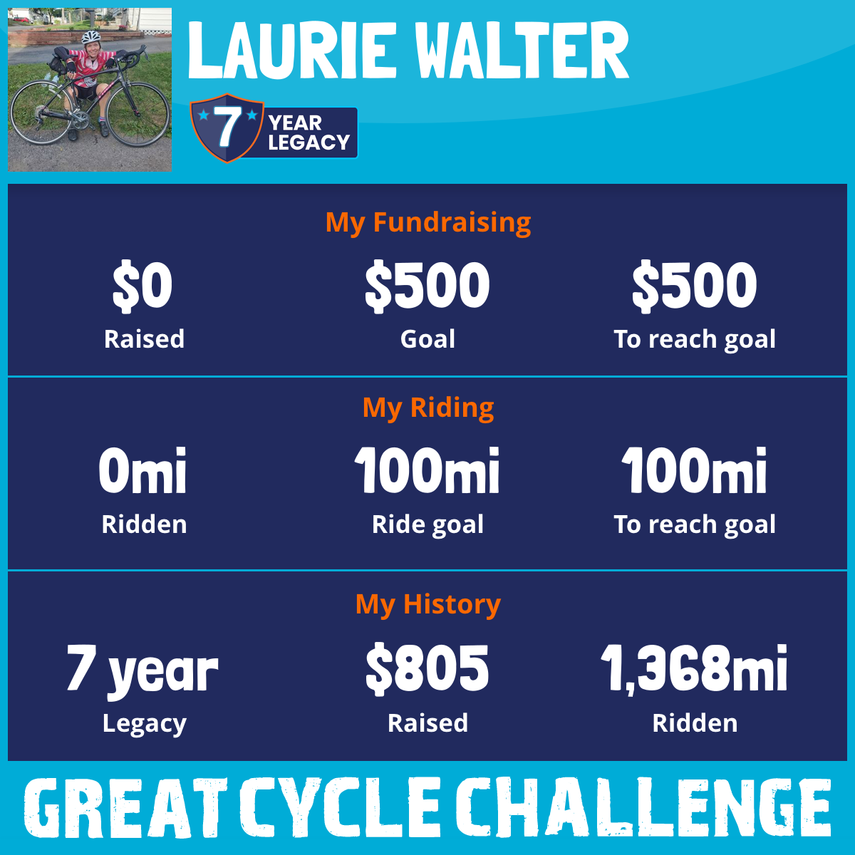 I am riding 100 mi in memory of Too many people. Please sponsor me and support my challenge to fight kids' cancer and save little lives.