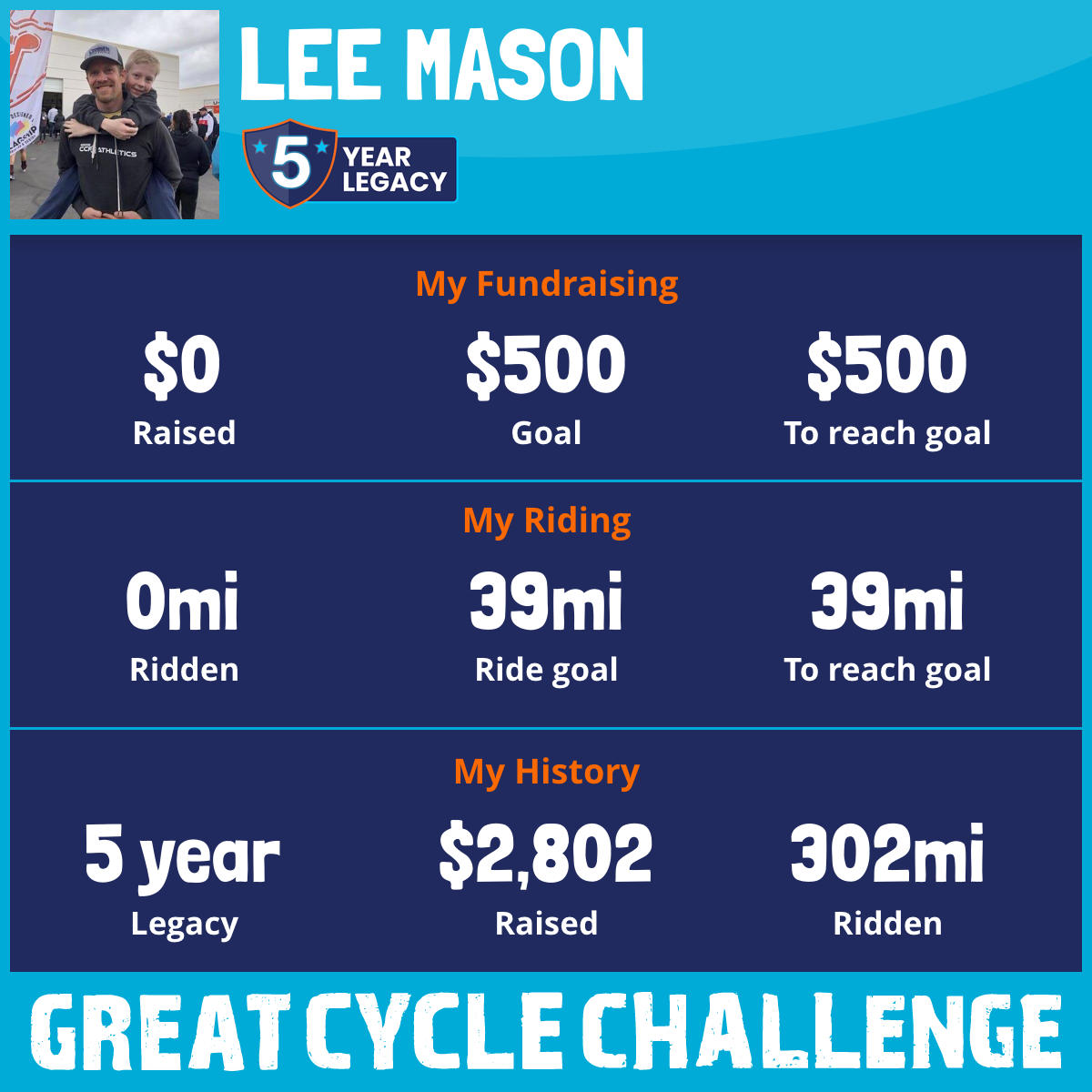 I am riding 39 mi for The Future. Please sponsor me and support my challenge to fight kids' cancer and save little lives.