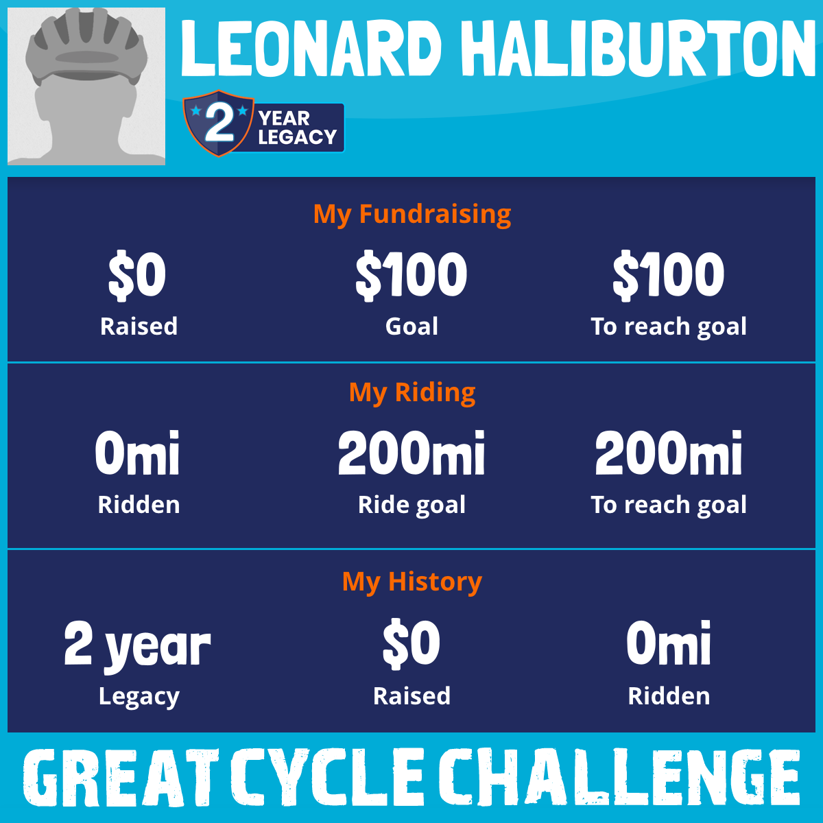 I am riding 200 mi in memory of my wife, Liliana Haliburton. Please sponsor me and support my challenge to fight kids' cancer and save little lives.