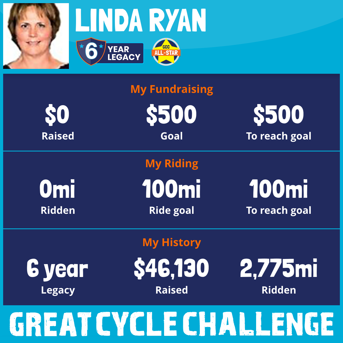 In September 2025, I will once again be taking part in the Great Cycle Challenge to fight kids' cancer! This will be my sixth year participating and my riding goal for this year will be 200 miles AND fundraising goal of $5,000.