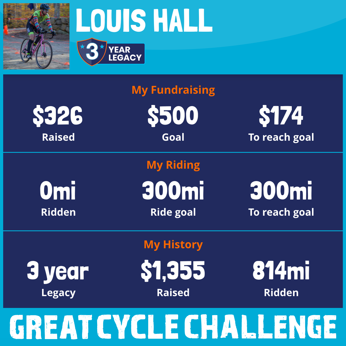 I am riding 300 mi for My Dad, Lou Hall Sr.. Please sponsor me and support my challenge to fight kids' cancer and save little lives.