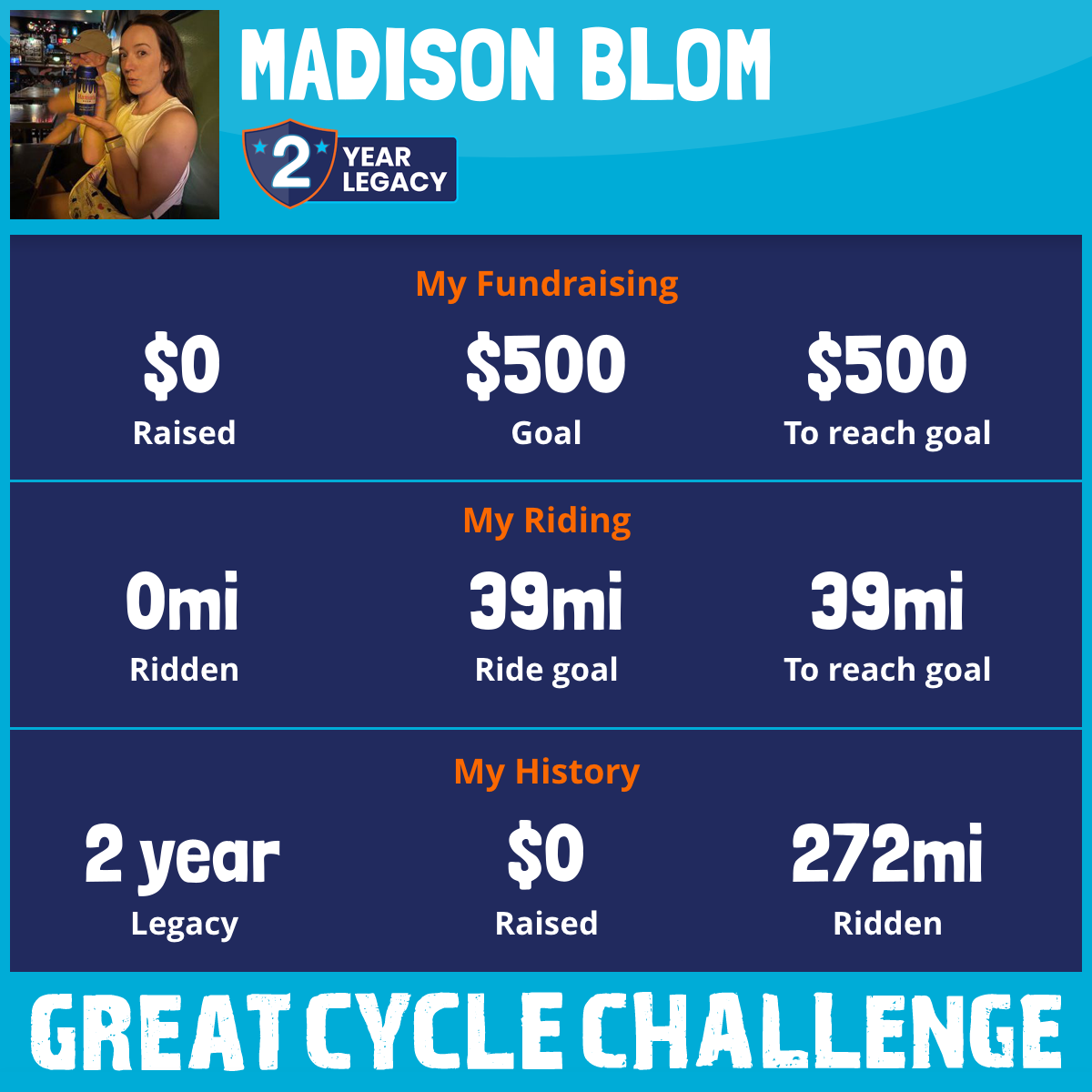 I am riding 39 mi to fight kids' cancer and save little lives. Please sponsor me to support my challenge!