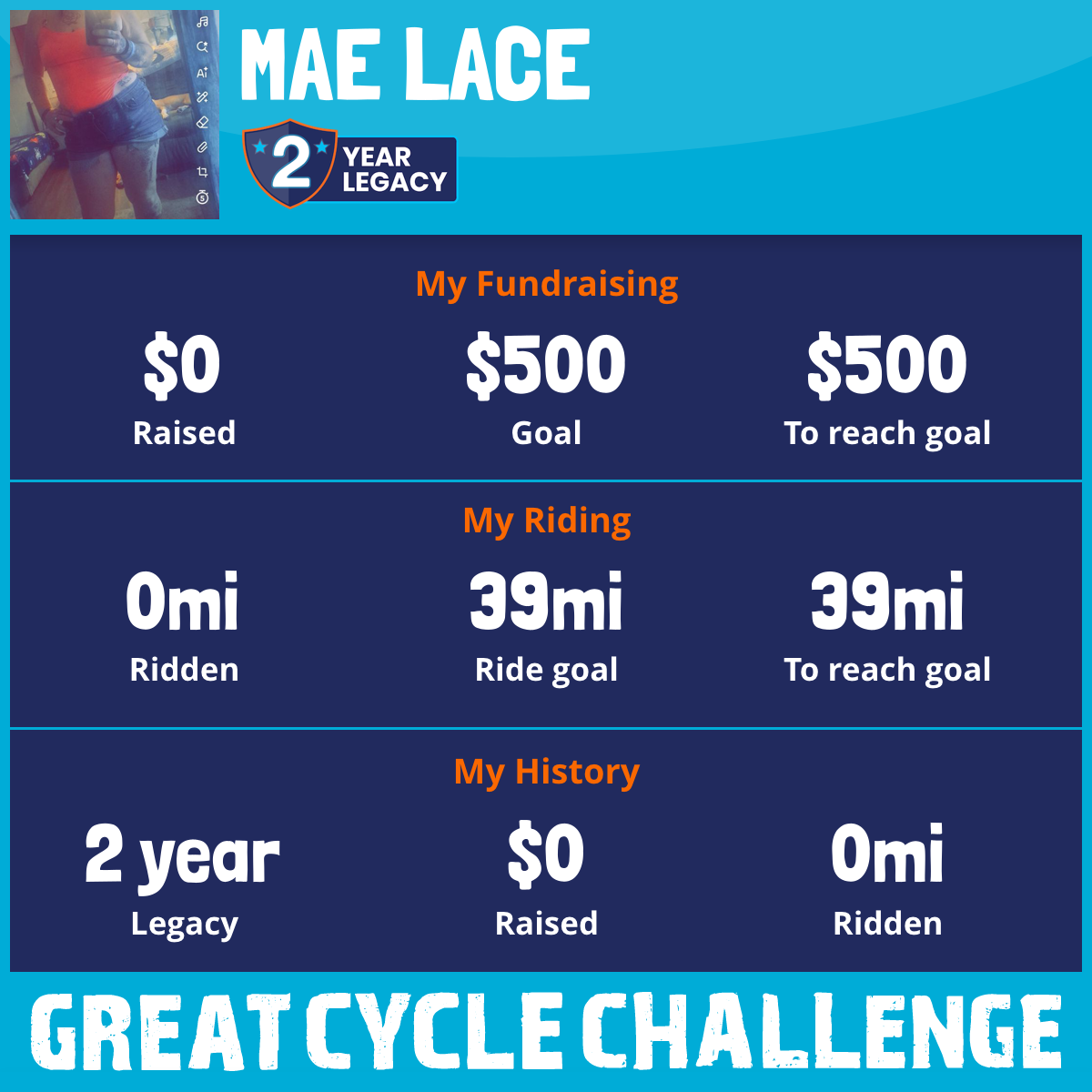 I am riding 39 mi in memory of my dad, Tim dockery. Please sponsor me and support my challenge to fight kids' cancer and save little lives.