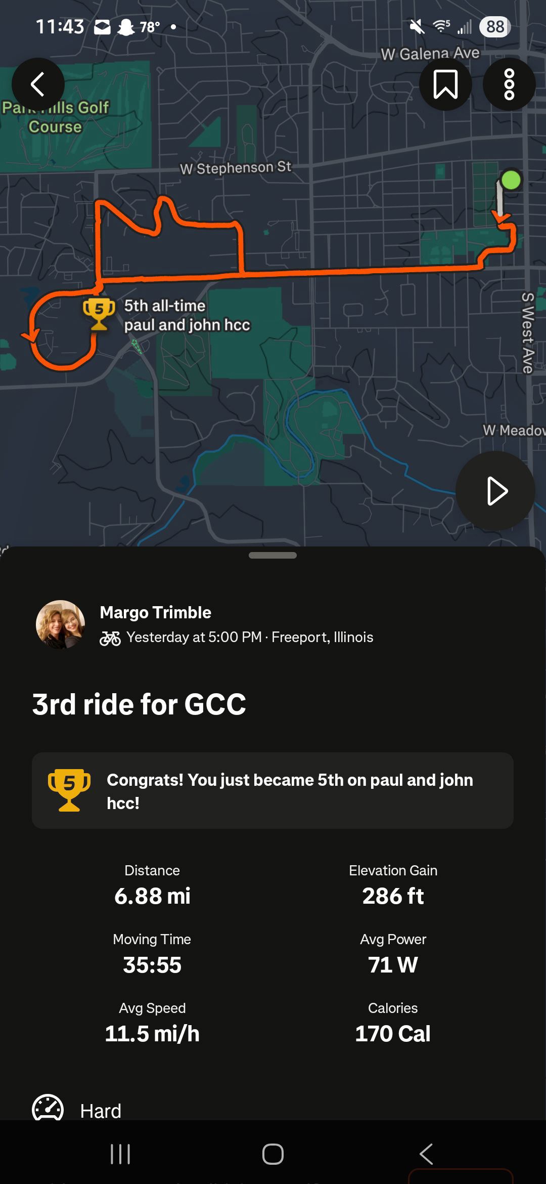 6.9 mi ride - 3rd ride for GCC - Sunday, September 14, 2025