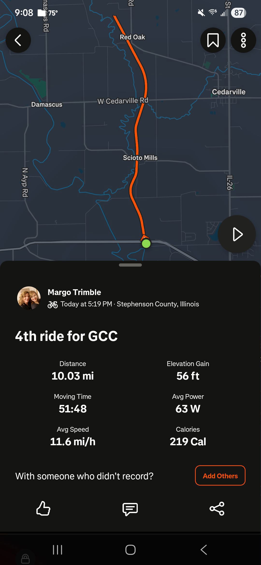 8.1 mi ride - 2nd ride for GCC - Tuesday, September 9, 2025