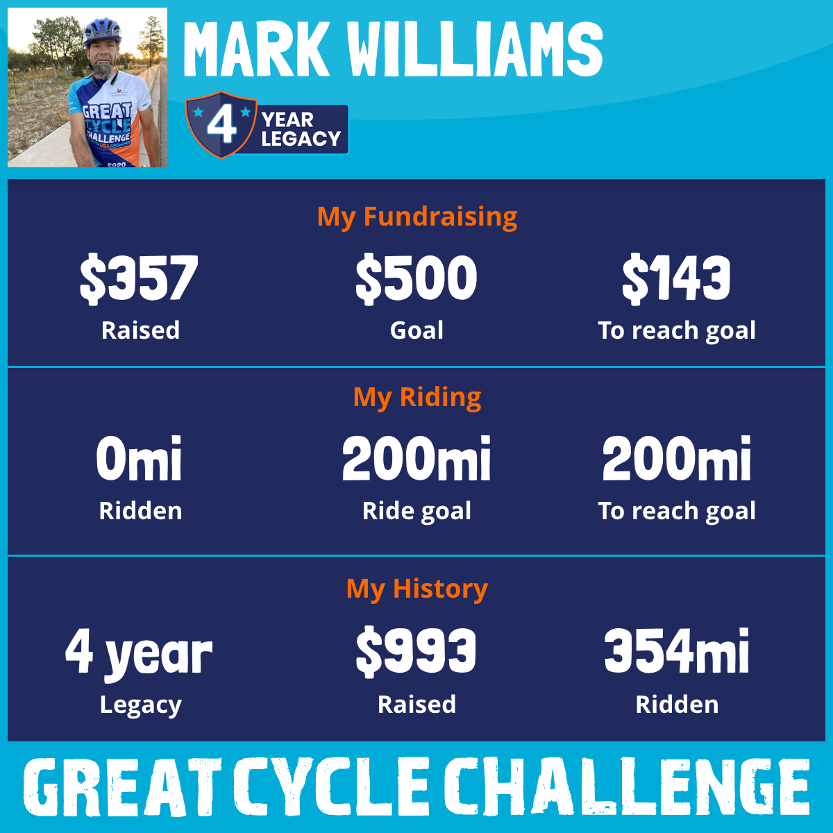 This September, I am taking part in the Great Cycle Challenge to fight kids' cancer! As a survivor of a rare cancer that typically only affects adolescents, Osteosarcoma, even more rare because of my diagnosis at the age of 55, I completely understand the suffering associated with one of the most deadly cancers out there. I experienced the pain and underwent treatment alongside teens with this brutal disease. I have experienced and seen firsthand and still have a hard time thinking about kids suffering from cancer!
