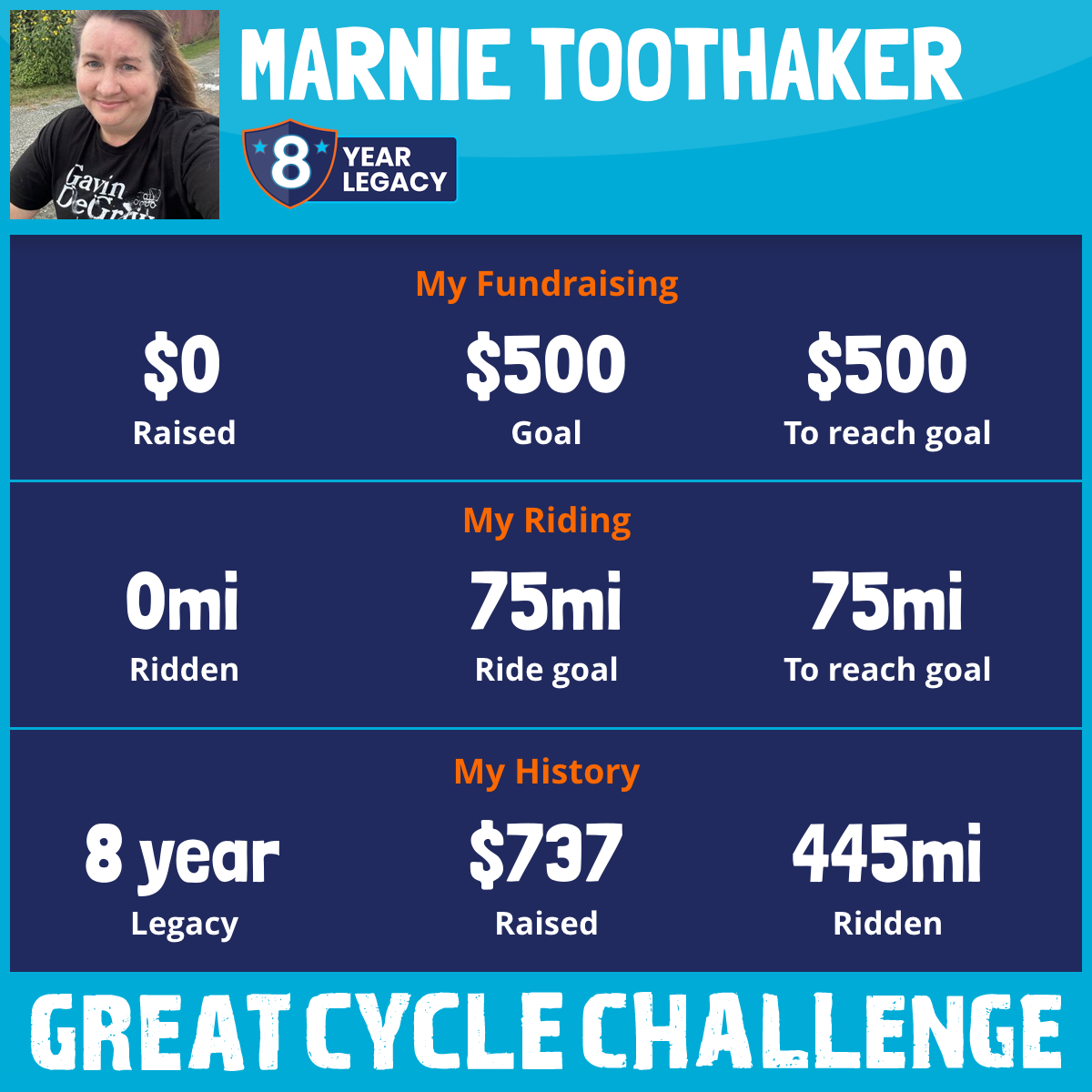 So I am raising funds through my challenge to help these kids and support Children's Cancer Research Fund to allow them to continue their work to develop lifesaving treatments and find a cure for childhood cancer.