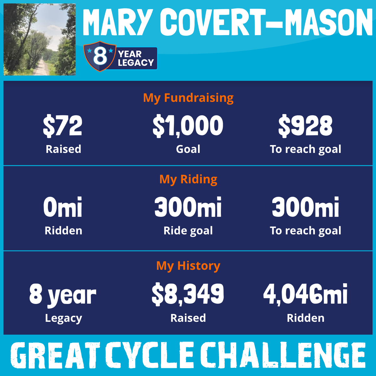 420 mi Ridden$1,150 Raised2025