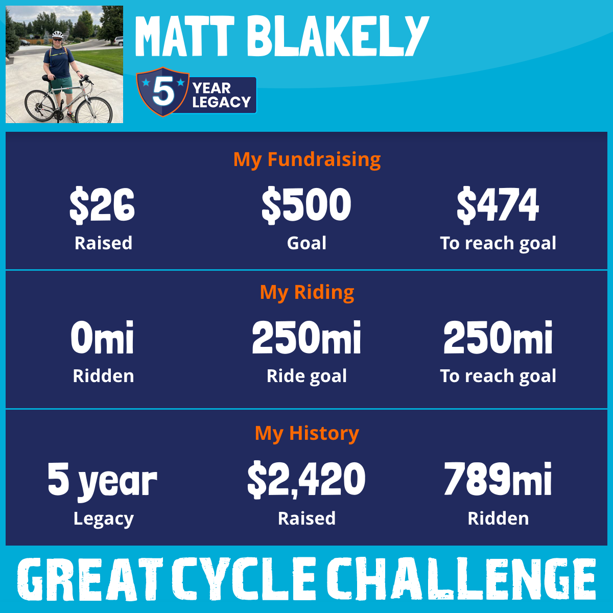 Over the past ten years, three friends of mine have had kids get cancer. Their courageous battles and the treatments they received enabled them to survive and thrive. I ride each year inspired by their journeys and hope to help raise a few hundred dollars to support the current and future fights of other kids battling cancer.