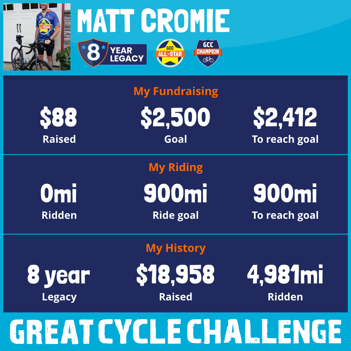 969 mi Ridden$4,556 Raised2023