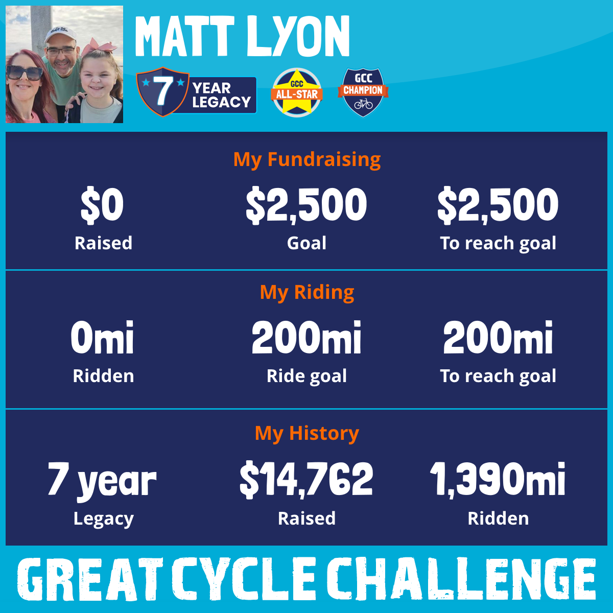 I am riding 200 mi to fight kids' cancer and save little lives. Please sponsor me to support my challenge!