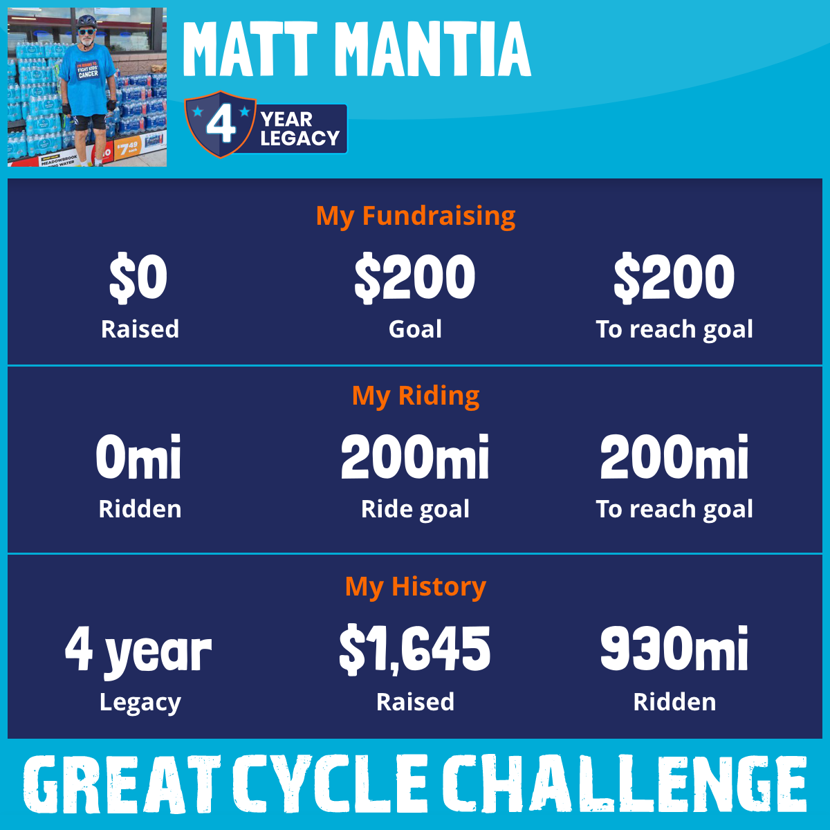 I am riding 200 mi to fight kids' cancer and save little lives. Please sponsor me to support my challenge!